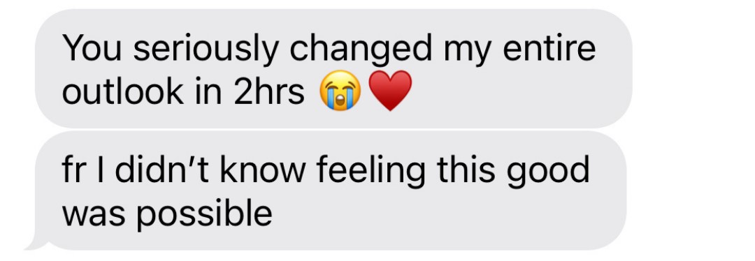 "When I started working with Trina, I was at one of the lowest points in my life. I felt lost in my own mind and couldn’t see a way out. Everything felt heavy and dark, and no matter how much I tried, I didnt think life would feel any different.